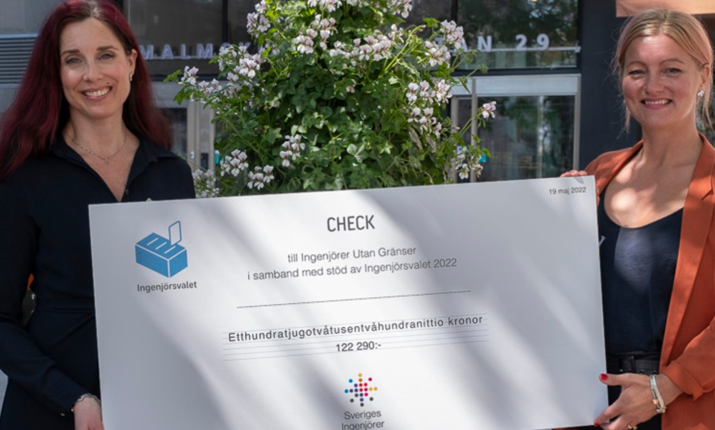 May 19, 2025 | Today, the association's chair Ulrika Lindstrand presented 122,290 kronor to Marlene Rosendal, Head of International projects at Engineers Without Borders. The amount of the gift corresponds to the promised ten kronor per member vote in Ingenjörsvalet 2022.